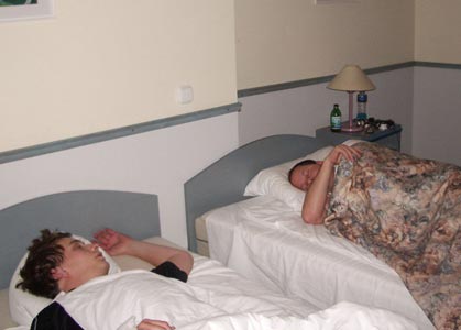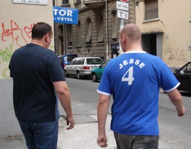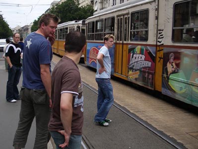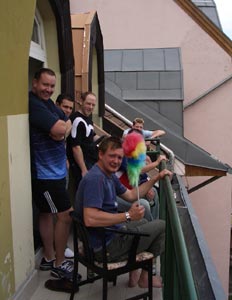 Whoozy from the night before, the crew assembled in DJ Fukup’s and Tragedy Dave’s rooms for a chill-out on the balconies where far down below there were some cute kittens playing. Suddenly a mischievous look came across DJ Fukup’s face. He rushed and grabbed the water bombs Hero had filled up and torpedoed them downwards, creating a huge bang and splash which sent the cats and surrounding garden furniture scattering, much to everyone’s laughter. Then a minute later we suddenly heard some angry foreign shouting which sent everyone quickly diving through the patio door into hidden cover of the room! But DJ Fukup hadn’t quite finished. Several more water bombs were tossed through the open patio door and out over the balcony in the direction of the angry foreign voice and as the loud splashes echoed through the courtyard, our stomachs were now hurting with laughter. Time for a quick exit, time to hit the bar. As we strolled through the streets of Budapest, we noticed that not all of us were present. But who was missing? “It’s Johnny Utah” someone said, “I bet he’s still pissed up somewhere from last night”. Then in the strangest and most hilarious twist of fate, a random taxi happened to stop in a random queue of traffic exactly in the same random spot of the same random stretch of road we were all walking down and at the same random moment in time we were all talking about him, who should open the door and step out but a grinning Johnny Utah. “THERE HE IS!!” someone shouts. Un-bloody-believable. “Duuuude” he says, “I f*cked up my arm even more last night, so I just went all the waaaay to hospital man, sat in the waiting room for 5 minutes but then couldn't be arsed and just came back out maaann”. Sounds about right for the sort of crazy thing he'd do. After hitting a few more bars, grabbing some grub and then blagging a free tram ride back to the hotel (which Hero decided to drop a stink bomb on), it was time for a quick kip before the evenings main event – the Stag Dinner! |