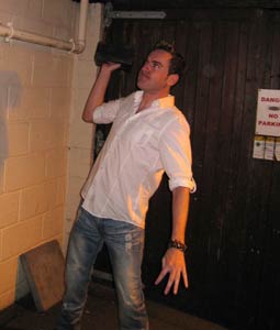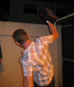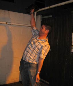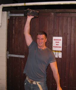 Year after year Clubflat's favourite Newquay bar in which to start the night off has always been Belushi's. It has it all. Relaxed atmosphere, great staff, hot chicks, live band, outdoor drinking area, Jager bombs, table football and this year, a gym where the Clubflat Team could show off their impressive strength (or not) pumping the iron. Okay, the gym was actually nothing more than a heavy weight the Team found on the floor, but this didn't matter. Each night the Clubflat Strongman Trials took place to see who could lift the weight straight above their head. So if you think you're hard enough to take on the Clubflat Team, you err, well you probably are judging by the below pics. |