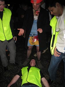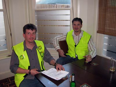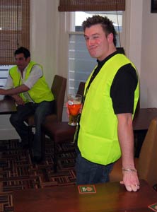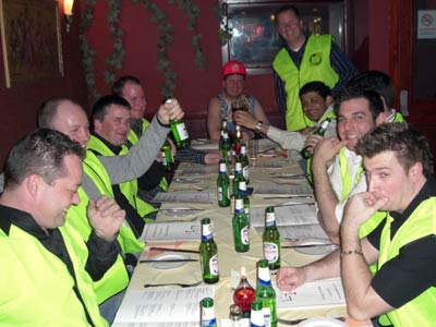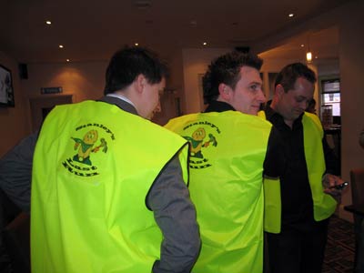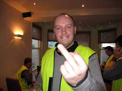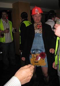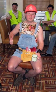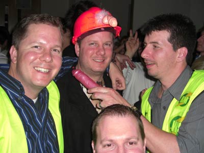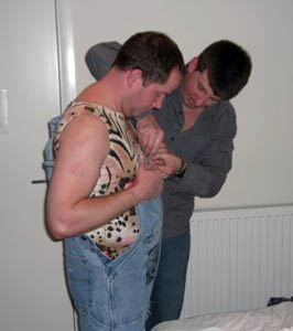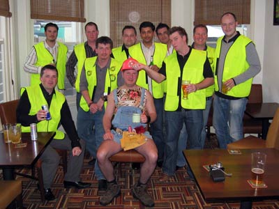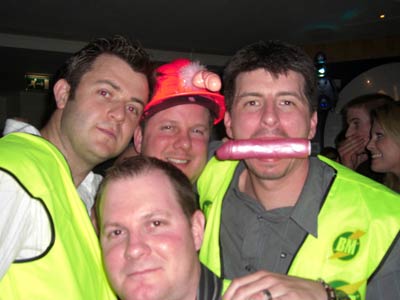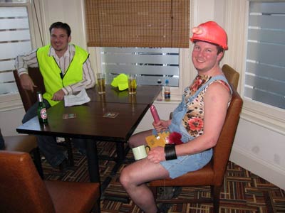 Tonight was destined to be messy. The Durban Drinkster was sporting his favourite dress and sex toys and everyone else was wearing bright fluorescent jackets with the logo "Stanley's Last Run" on it above a picture of a cock. Drinking rules were in force all night. The English blokes could have done with a mug chained to their left hand too, especially Party Pete who got caught out 4 times in a row drinking from his right hand with a full pint each time which he then had to down. He was bladdered before the stag meal was even over! When more drinking games were played during the meal, Dancing Jock came up with a corker when he won the chance to enforce a new rule. No drinking out the left hand! This got some revenge on the South Africans there as they had grown up following the right-hand rule, but now they were getting caught out! After the meal came the bar-crawl where some of Bournemouth's greatest tourist attractions could be seen - throwing up in doorways. And these were the women. Quality Bournemouth birds. The Durban Drinkster danced the night away in his dress and stockings playing lovingly with his dildo until finally all stumbled back to the hotel in the early hours. A few night caps finished it all off nicely. |