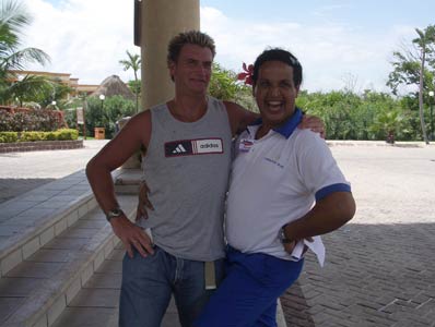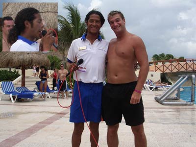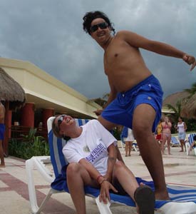 Without doubt the Bahia Entertainment Team made this holiday. With their unscripted daftness around the pool in the day and more daftness at night in between the fantastic shows they put on, Clubflat felt right at home. It wasn't long before the whole entertainment team knew who we were, each one probably had about 10 Clubflat cards by the end of the holiday. Leader of the pack was the naturally funny Belgium come Mexican camp comic called Rico. What a crazy guy he was. If he wasn't licking his fingers and squeezing his nipples, he was telling everyone "I love you baby", dressing up like a woman or dragging people off sun loungers and throwing them in the pool. It was impossible not to have a smile on your face when this guy was around, just looking at him made you laugh. Also in the entertainment team was a Ronaldhino look-alike called Rolando, as well as Noa, the super skinny Lupillo, Johan, Paco, Sergio, Jose the manager and a few others we can't remember the names of! Big shout to you guys and the rest of the Bahia hotel crew too, you were tops. |