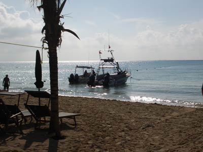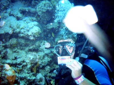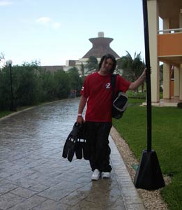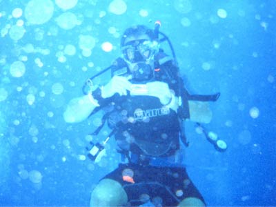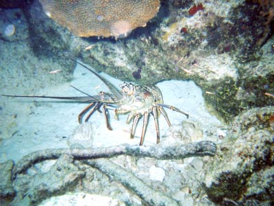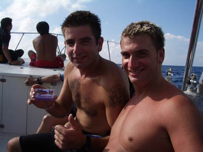 Another two dives this day, one at a site called Paradise and one at a site called Santa Rosa. At Paradise was a 400m reef wall which we explored at about 25m deep. Yet again this was a drift dive although not as rapid as the drifts at Turtle Reef, but this was probably because the sea was like a pond today rather than a tsunami. Thank the lord, that means no sea-sickness this time. On the boat again was Jaap from Holland who gave us the low down on Holland's favourite activity. He also reckons he gave up the green stuff years ago. Yeah right. The diving was again pretty awesome and some amazing sea-life was seen from turtles (again), to lobsters, weird crusty crabs and many mad looking fish. The reef wall was probably the best dive of the lot and what made it better was when Pancho decided to lead us through a small hole in the reef wall into a cave-like tunnel so small that our tanks were banging off the roof. Mega claustrophobia, if you let it get to you! It was here that Hero's arm brushed against a sea fern of some sort as he crawled through the tunnel and promptly received a million stings up his arm which swelled up for the next 4 weeks. When he thanked Pancho for it after, the reply was simply "Yeah they can be nasty, especially when they brush your face". Nice one Pancho! |