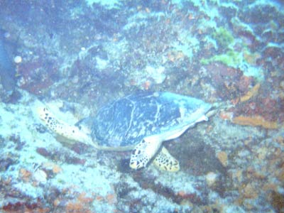 ![]() Another turtle found feeding on the reef wall |