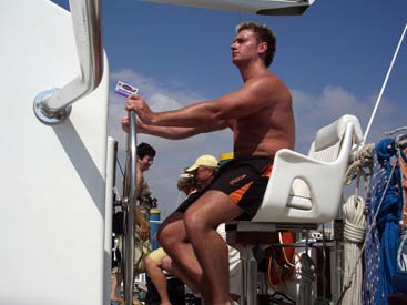 ![]() Fed up of finding the cards, boat-hand Roy snares Hero in a noose |