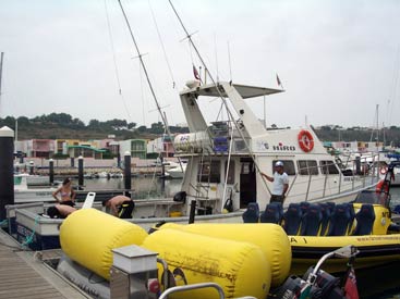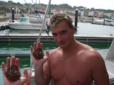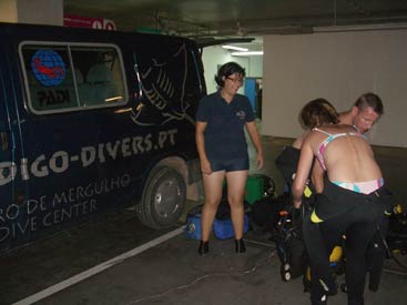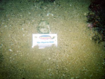 Wherever they go, diving is always a number 1 priority for Hero and Wolverand and in Albufeira, the main and only dive school is Indigo Divers - check them out on www.indigo-divers.pt. As usual Clubflat left their mark with cards being left everywhere, including the sea bed. Diving in The Algarve isn't exactly exotic. The Atlantic ocean is quite dark with only 6-8 metres visibility and the sea was about 20-22 degrees, so the dives were really intermediate ones just above what you'd get in the UK. But every time you dive somewhere, it's always different and all good experience, especially when you were on a tiny boat about the same size as the one in the film Jaws! It's also the first time we've got kitted up in an underground car park! The two dives on the first day helped us get used to the conditions for the next day of diving. Diving with Hero and Wolverand was Divemaster Tiago and fellow Brit Clive. First dive was around 16m deep at a site called 'Bedra Do Alto' and the second dive at around 10m at a site called 'Bedra Da Oura'. Not loads to see down there so you need to look carefully. |