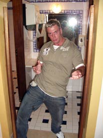 ![]() Cowboy bob stands outside Augustos' hauling in passers-by and dishing out Clubflat cards |